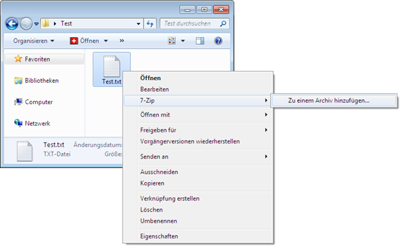 Benutzung von 7-Zip